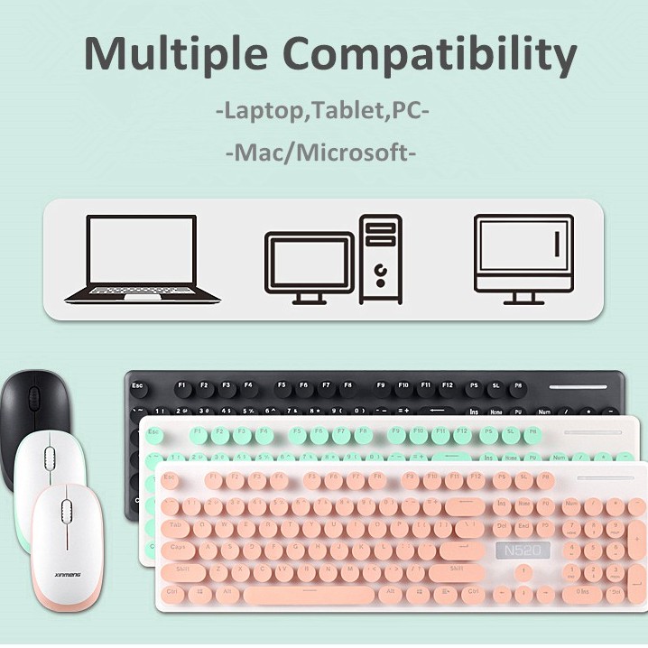 [SG Local] N520 Wireless Keyboard Mouse Combo Vintage Round Keycaps Mechanical Keyboard