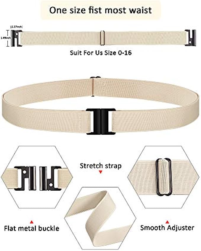 • Adjustable size: the invisible belt is approx. 100 x 3.5 cm/ 39.37 x 1.38 inches, fit for US size 0-16, , the buckle is 1.37 inch wide, 1.49 inch long; The elastic strap is flexible to adjust, one size fits most, holding up your pants and fit around your waist tightly