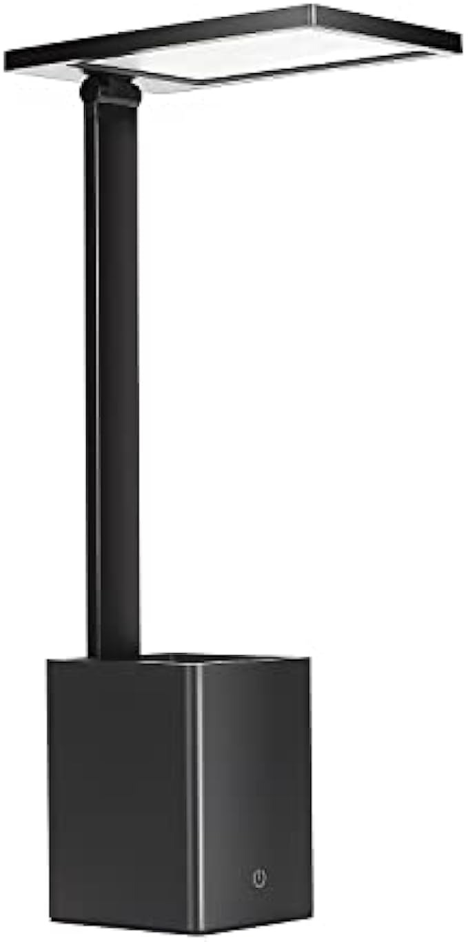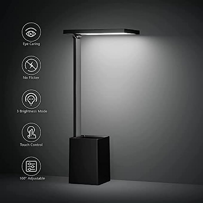 • 160° ROTATE & PEN HOULDER- Super elegant pen holder desk lamp. lamp head 160° rotate,barely takes up any space and it's foldable. it fits great next to your laptop to read and work by, looks very compatible with other items on the table,the pen holder easy to store your store your pens and rulers,etc. the base is a good weight to be able to hold the light very stable