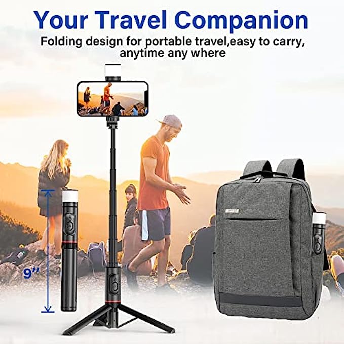 ?【All-in-one Mobile Phone Tripod】The selfie stick tripod is multi-functional and adjustable. You can adjust the height flexible between 9" and 30". Not only can be your lightweight iPhone tripod stand for travel but also be an iPhone stand for video recording when you are live streaming or be an iPhone selfie stick tripod with remote when you taking family photos. Bringing the best photography results for multi-scene applications.