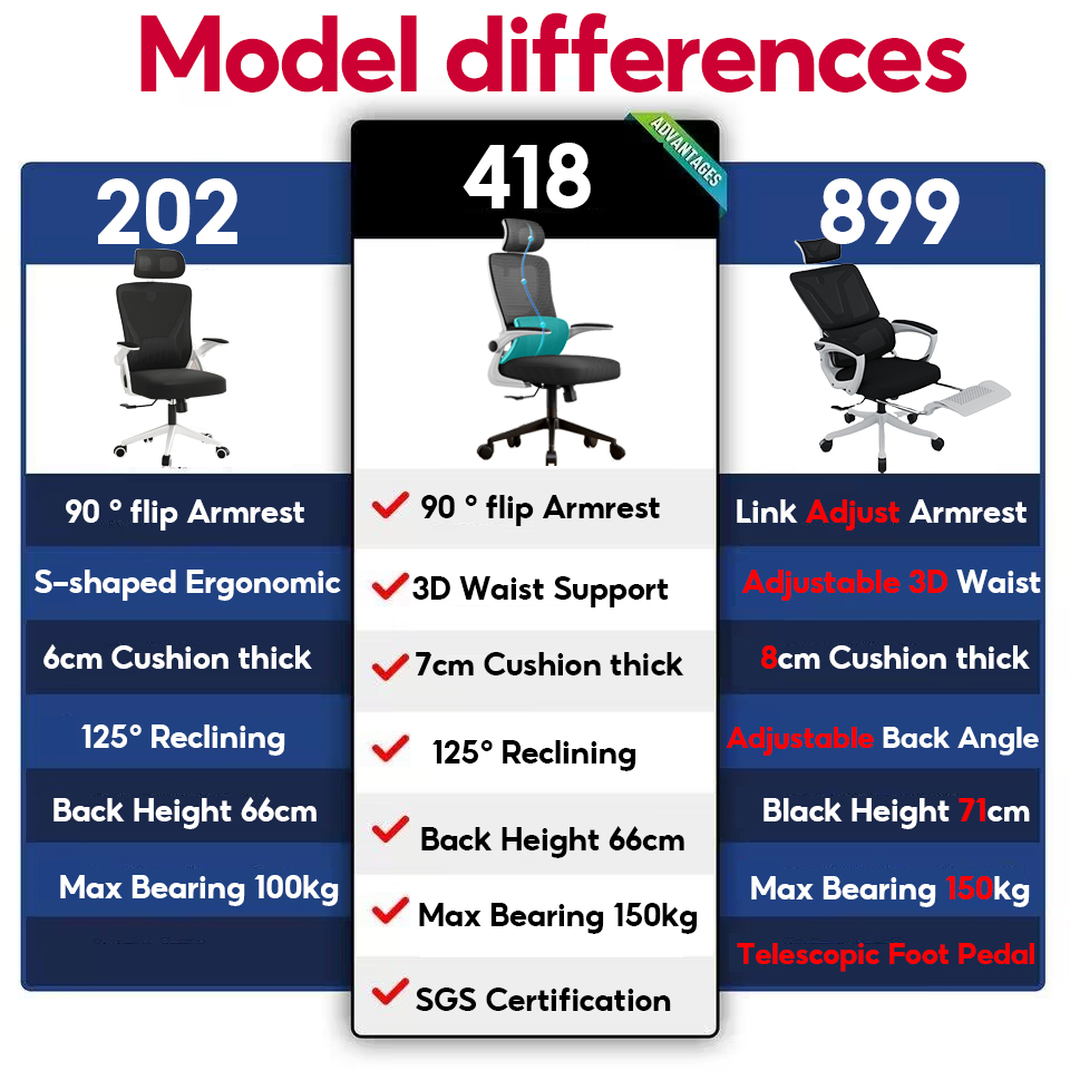 LeShu Office Chair Ergonomic Mesh Office Chair Comfort For Work 8 Hours High-back Adjustable 3D Headrest Reclining 90-125°