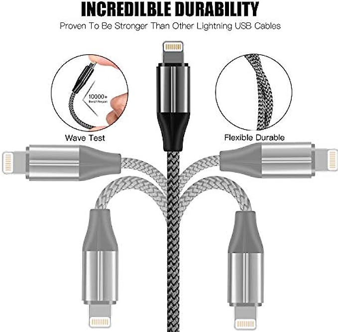 【Ultra Durable iPhone charger】: Reinforced stress points with a 10000+ bend lifespan make iPhone cord many times more durable than anything else on the market.